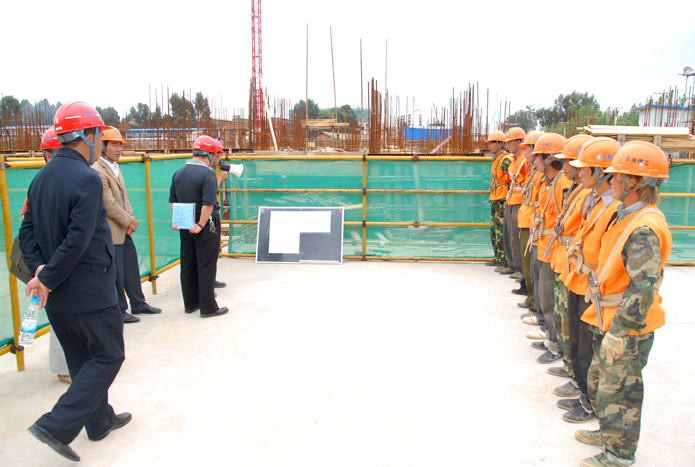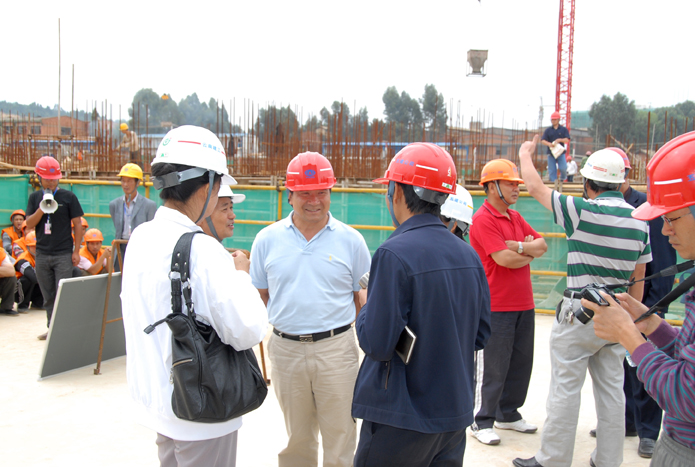 技術(shù)支持: 方森科技 2010年8月25日上午,集團(tuán)公司在五公司第一直管部承建的第三城•丹槿園施工現(xiàn)場(chǎng)召開施工現(xiàn)場(chǎng)班組安全建設(shè)啟動(dòng)儀式現(xiàn)場(chǎng)會(huì)。昆明市建筑安全監(jiān)督管理站站長(zhǎng)梁少軍,集團(tuán)公司副總經(jīng)理?xiàng)顫?、安全總監(jiān)段益慶、生產(chǎn)安全處主任蘇雄斌,五公司董事長(zhǎng)、黨委書記楊福和出席會(huì)議。會(huì)議由段益慶主持。